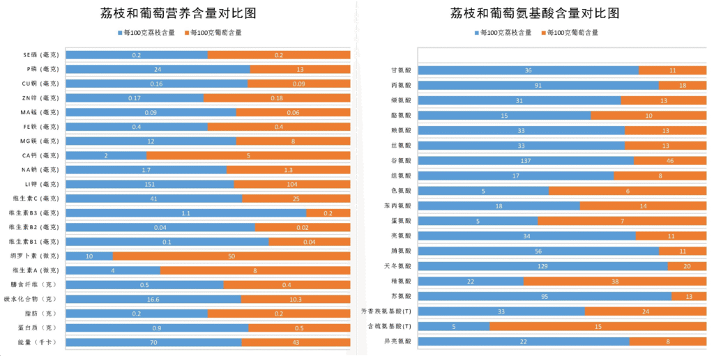 荔枝富含果糖、膳食纖維、蛋白質、多種維生素、17種氨基酸,和人體必需的礦物質和微量元素